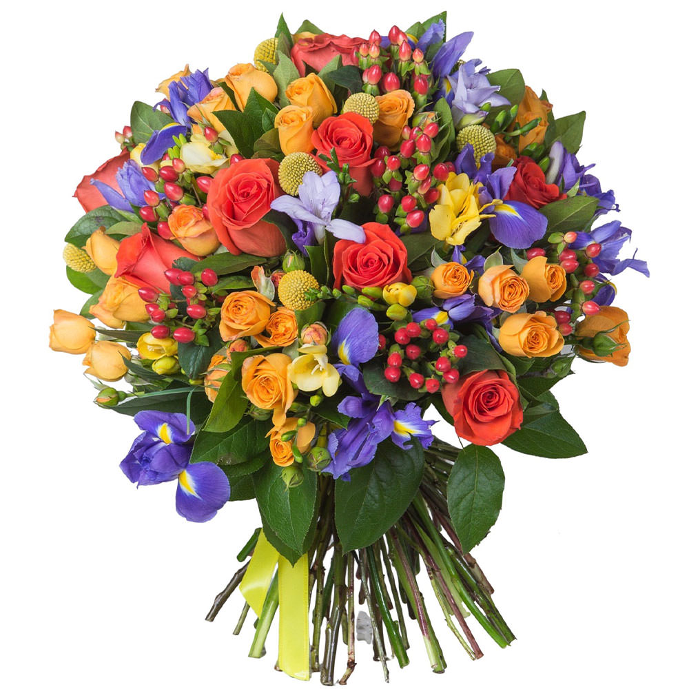 | Состав | Альстромерии, Ирисы, Кустовые розы, Розы, Фрезии |