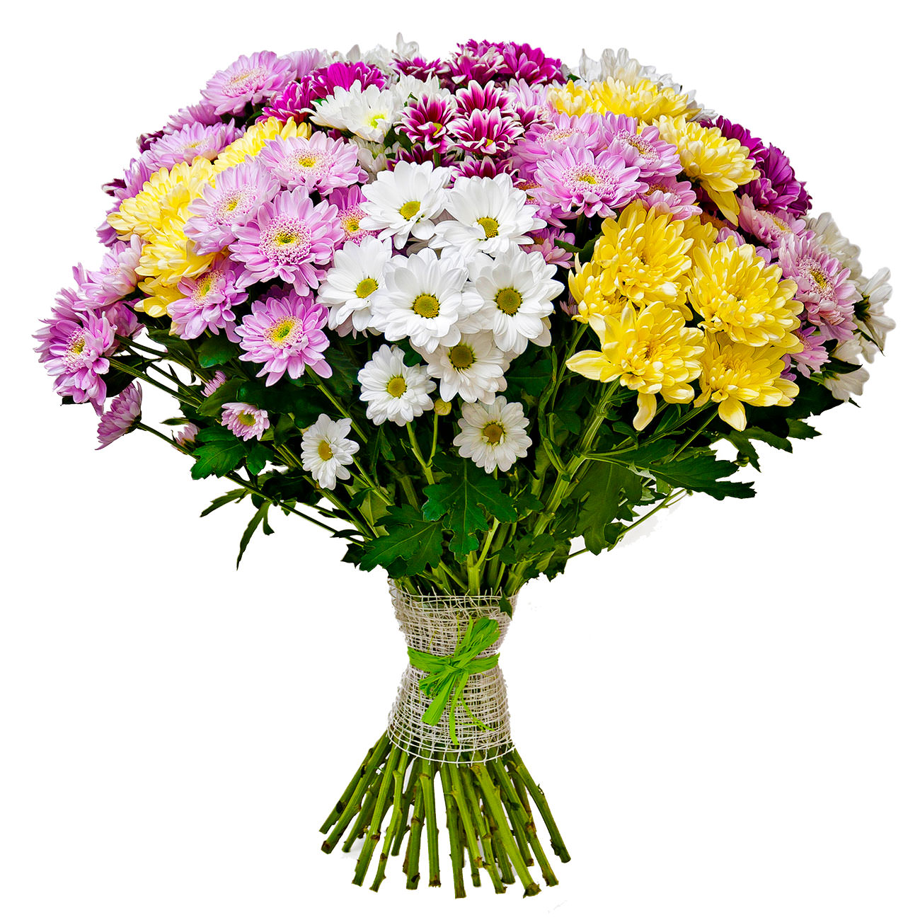 Хризантема кустовая микс 2 с доставкой по г Юрюзань: вы можете купить букет в цветочном интернет-магазине «Флормания» по цене за 300 руб.