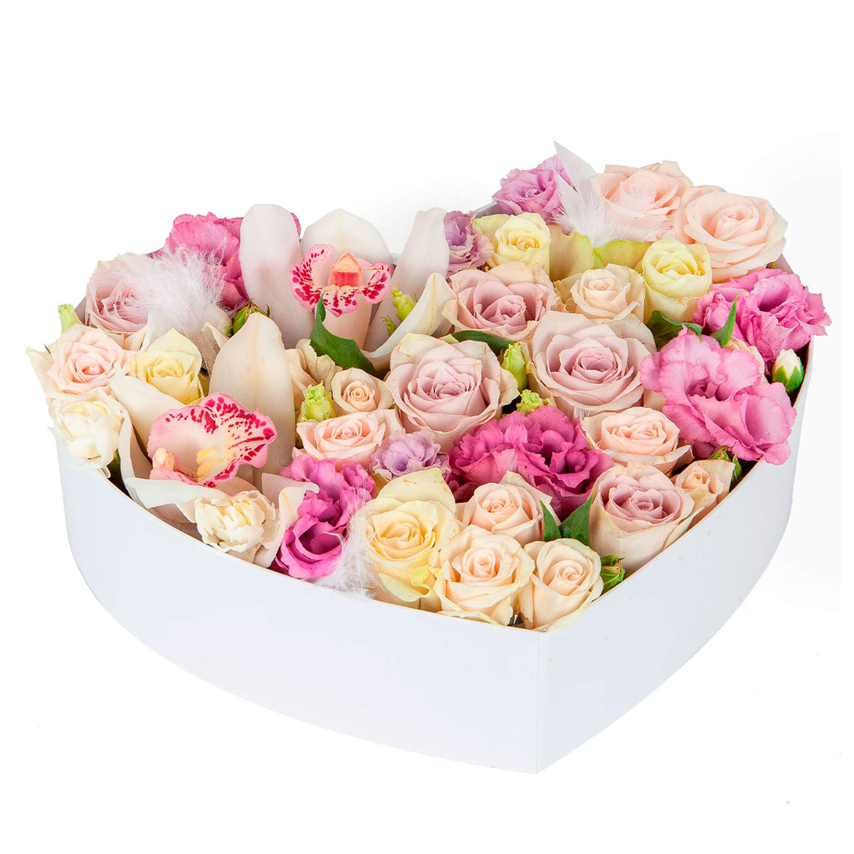 Цветы в коробке «Нежный флер» с доставкой по г Юрюзань: вы можете заказать букет в цветочном салоне «Флормания» по цене от 3390 руб.