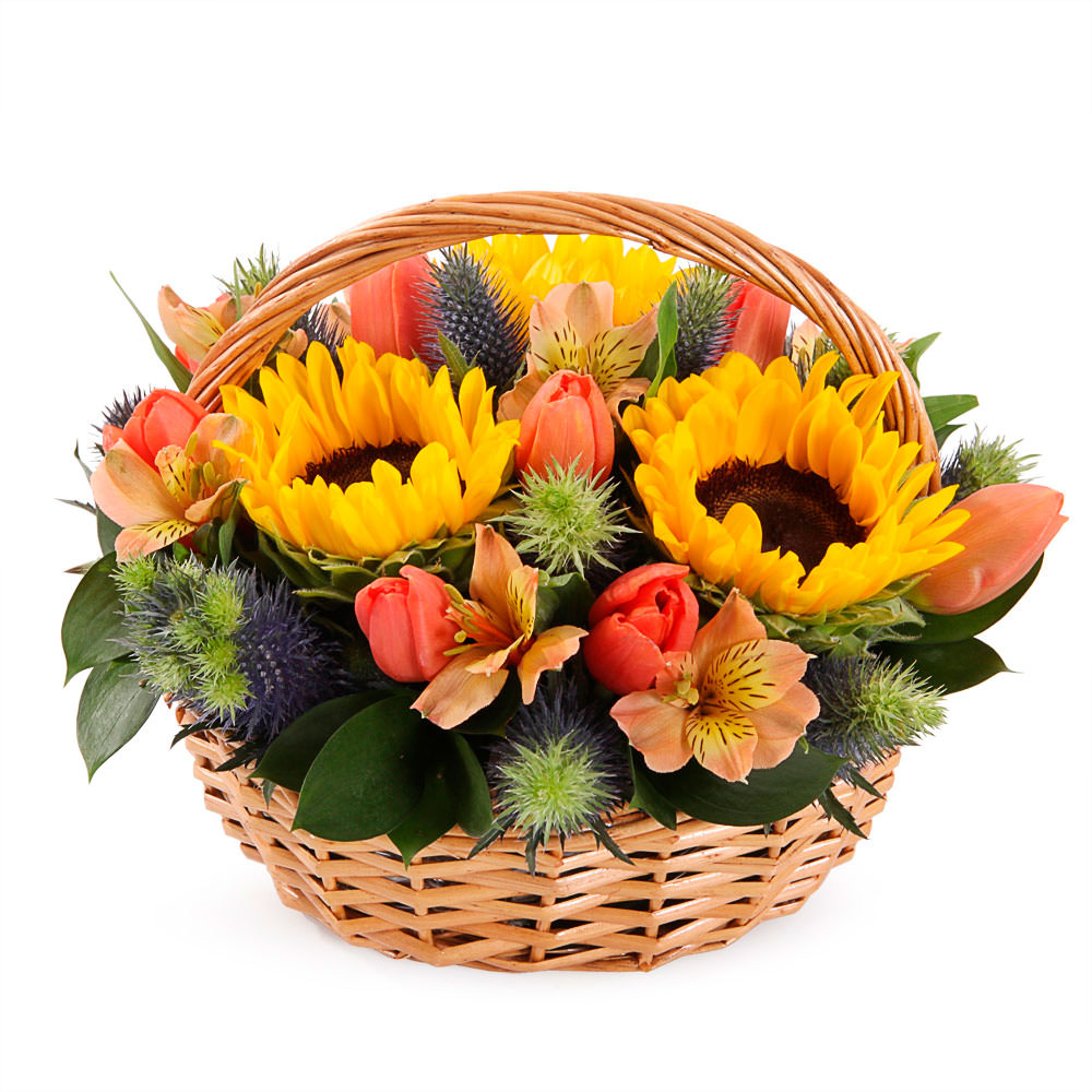Цветы в корзинке «Солнечный день» с доставкой по г Юрюзань: вы можете купить букет в цветочном интернет-магазине «Флормания» по цене от 3890 руб.